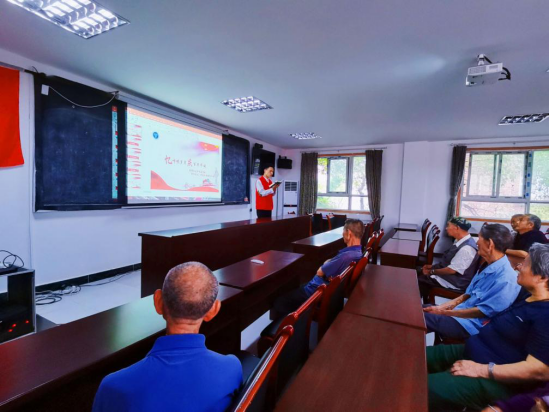 为庆祝中国共产党成立100周年,感悟革命先辈矢志不渝、艰苦奋斗的红色精神,e行团联合登瀛社区组织开展了“忆峥嵘岁月 庆百年华诞”主题观影活动。“如果不是那一面高举的红旗怎会有今天壮丽锦绣的山河……”一行行铿锵有力的诗文,一句句简短朴实的表白抒发着对中国共产党炽热的爱。活动伊始,e行团成员特别准备了朗诵《共青团员和少先队员代表集体致献词》,时而慷慨激昂、时而婉转低回,深深引起了在场党员和群众们的共鸣。