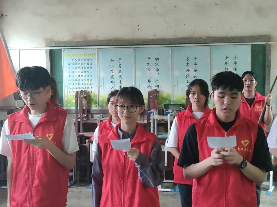 你知道我有千言你有万语,却不肯说出口;你知道我好担心我好难过,却不敢说出口。甲壳虫们来到偌大的教室,整理好讲桌上的粉笔,擦点黑板的大字,还原课桌的位子,扫除地上的垃圾。今天的校园格外的不一般,没有喧闹、没有歌声、没有欢笑、没有奔跑的身影,一切的一切都都在今天沉静下来。关上窗户、锁上大门,与村小负责人胡老师做好交接并和广龙村冉书记向主任表示感谢。回到住所,整理好行李,脱下赤红的马甲,此次2021年暑期“三下乡”到此结束。