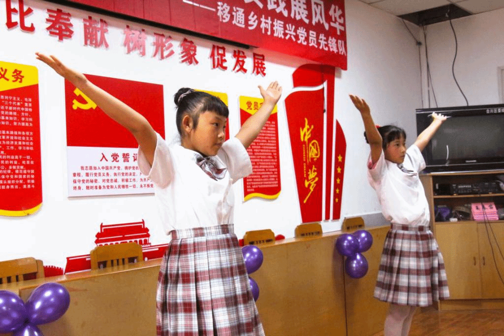 2021年7月9日移通乡村振兴党员先锋队在皂角村党群服务中心开展以“永远跟党走,奋进新时代”为主题的文艺汇演,向家长和村领导展现完满课堂成果,收获了一致好评。