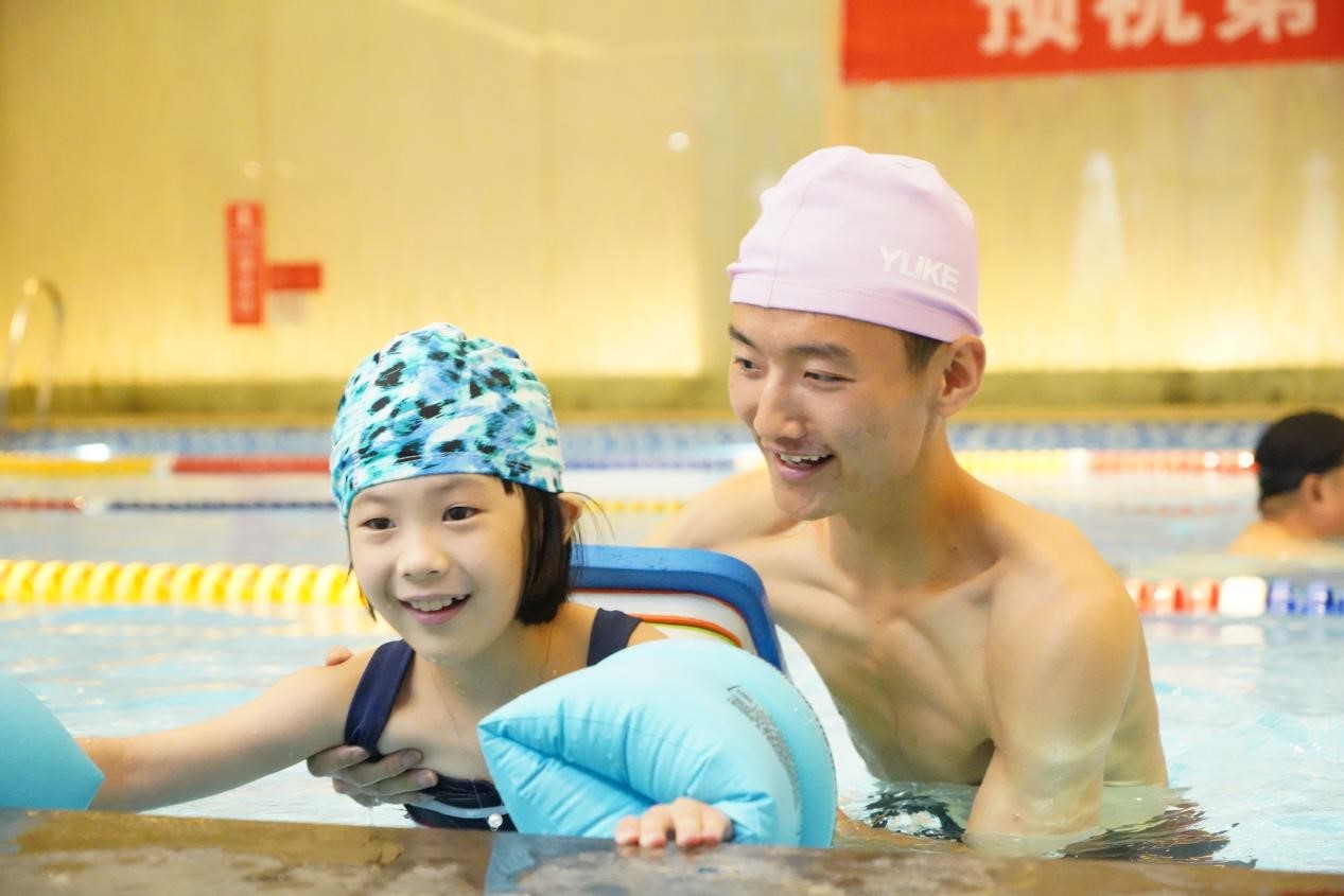 我很庆幸,能发挥自己的一技之长,和这群星星的孩子共同游玩在这蓝色的水池之中,我很自豪,在这一片水花中,能邂逅一阵欢笑声。我在水中托起孩子们的身体,改正他们错误的泳姿,告诉他们不用害怕,一点点克服内心的恐惧。很快,孩子们感受到了真正的关心,开始主动和我们说话,这次的游泳课释放了他们久违的天真。让我们真正高兴的是我们收获到了打动大众的微笑和感谢,志愿之路我会一直在。