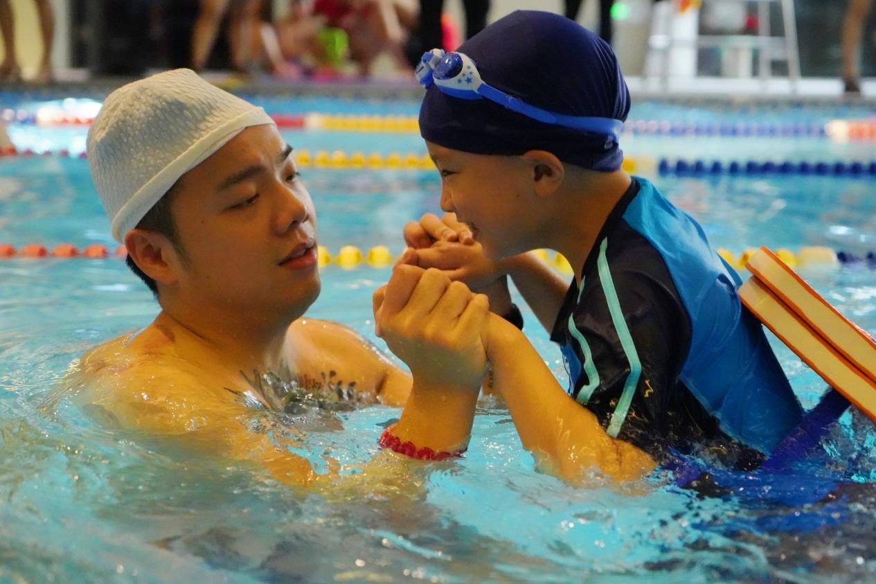 自闭症儿童被称为来自“星星的孩子”,他们执着于自己的世界,很少与人沟通交流,为此重庆移通学院艺术传媒学院“卫星”志愿服务团志愿者们携手辰丞体育一起为“星星的孩子”开设了一门特殊的游泳课。