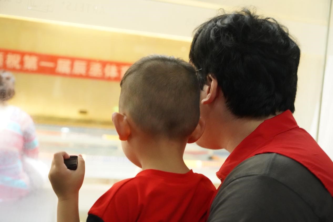 作为一个志愿者,第一次接触到自闭症儿童们,完全看不出他们与正常孩子们的区别。他们有开心的笑脸也有害怕的胆怯,在进入泳池后,有的孩子在教练的带领下很快就能在泳池自由的玩耍甚至可以在泳池里游一圈那么长。而第一次接触泳池的孩子即使害怕,哭泣,也在父母的陪伴与鼓励下逐渐勇敢了起来。接触了一段时间之后,你才能渐渐看出他们与其他孩子的区别 ,在与他们对话时,他不会对你的问题给出反应,而严重的孩子会对一件事情格外执拗。但是令我惊讶的是,我与其中一个孩子交流时,他虽然喜欢跟我恶作剧,但特别可爱的是他让妈妈坐下休息。他才几岁,却比很多孩子都要懂事些。活动结束后,很多妈妈都来找我给她们和孩子拍一个合照,孩子游泳的时候也会不断的拍视频,拍照,记录下这个珍贵的瞬间。其中有个孩子是由爸爸带着的,大多数孩子都是妈妈陪伴,很少看见爸爸来带孩子的,但是他却比所有妈妈都要温柔有耐心,而且在闲暇的时候会和妈妈们交流经验,妈妈们都在安慰鼓励他。我觉得,虽然自闭症儿童与其他孩子不一样,但是父母给予他们的爱是相同的。我希望在未来,他们能够变得越来越好。我们也会继续为闪烁的“星星”孩子护航。