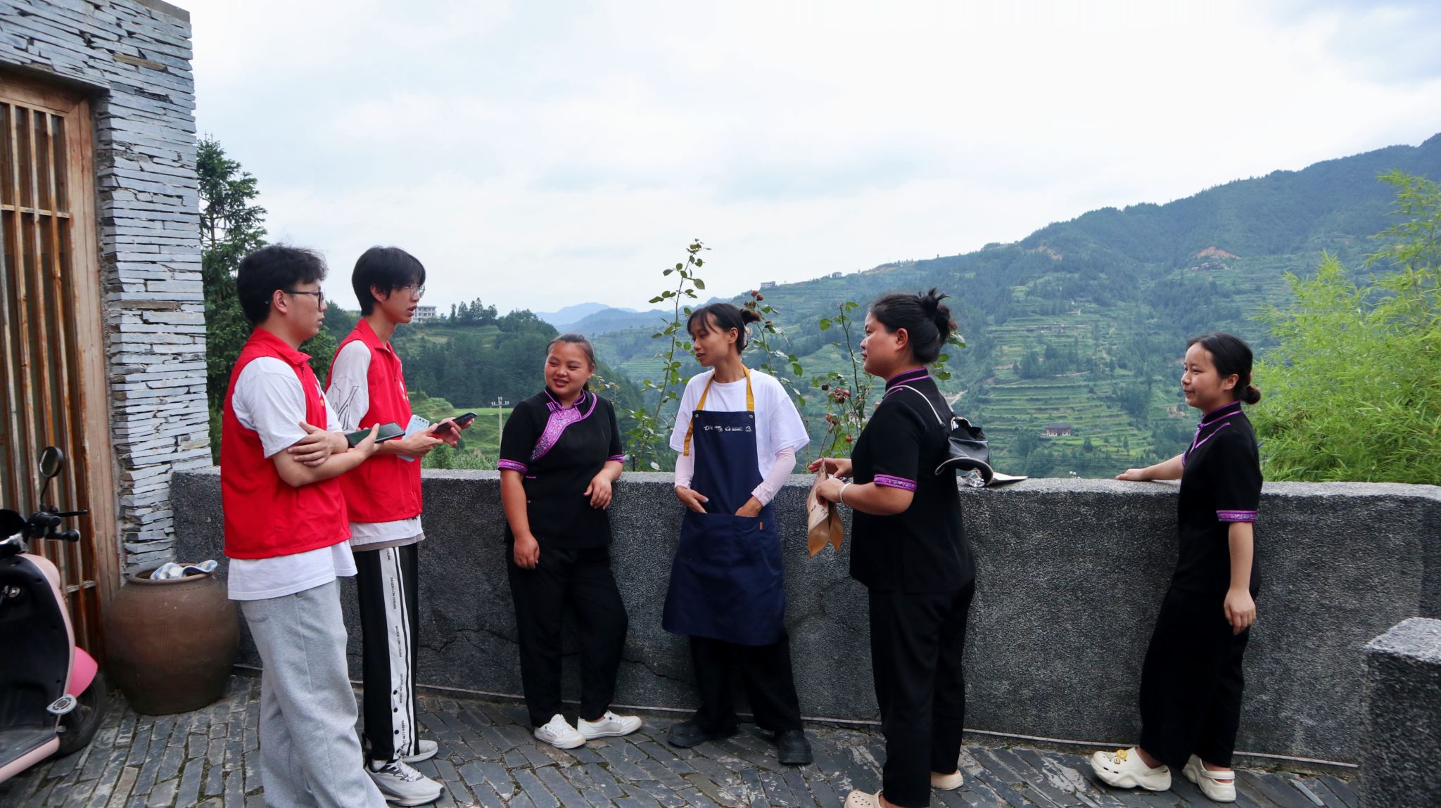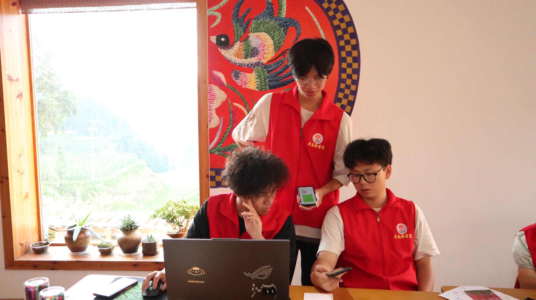 7月9日上午,志愿者们以前几天实地走访调研录制的双语素材为基础,开始为白岩村打造“苗普”双语导游二维码。志愿者们将录制的苗语与普通话双语导游语音及解说词,转化为便捷的二维码,作为链接外来游客与苗族文化之间的一座桥梁。游客们只需扫二维码便能即刻听到白岩村相关信息及景点介绍,深入了解白岩村的历史沿革、风土人情和民族文化。此外,找本地居民录制的苗语版介绍,可以让游客更沉浸式地感受到自己是在少数民族村寨,感受苗语的神秘和独特,了解苗族文化的精髓与魅力,从而增强旅游体验的丰富性和满意度,促进白岩村文化的交流与传播。