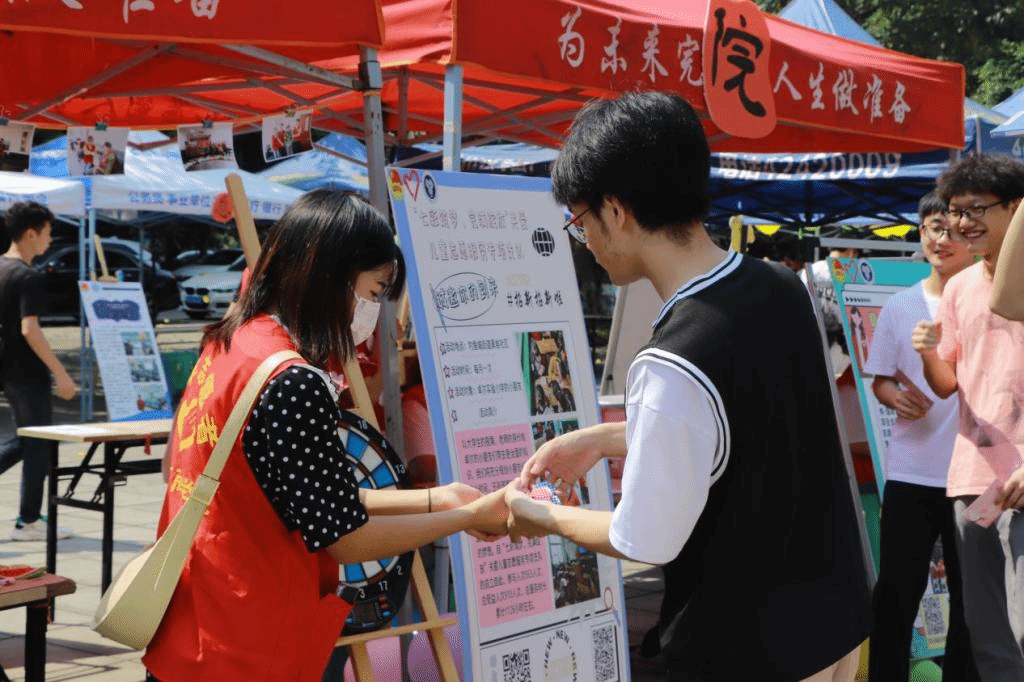 与往年不同的是,今年采用志愿游戏与招新相结合的方式。运用志愿游戏增进对志愿的理解是此次招新工作的一项创新,旨在通过邀请全校学生参与互动游戏,在欢声笑语中增加对志愿服务的了解。当天的游戏有写下你对志愿的理解、“智慧转童年,志愿寻初心”、支队问题问答等多项活动,吸引了不少路过的师生参与。