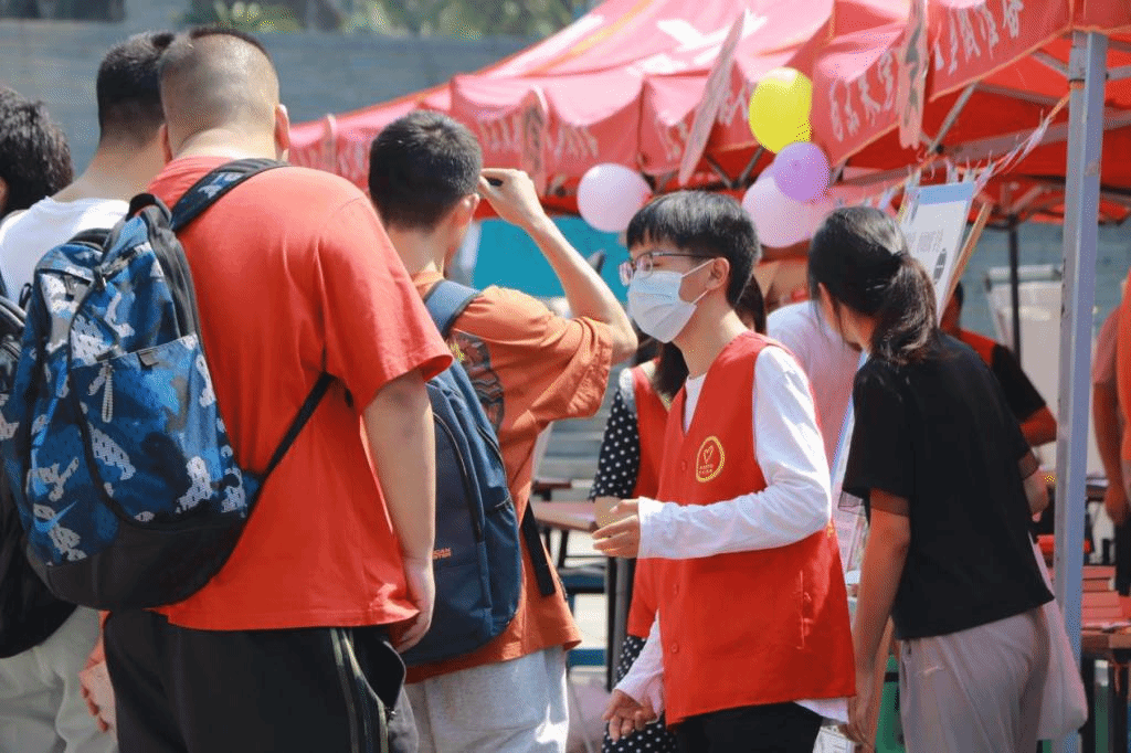 在招新现场,各学院、组织都设立了宣传点。同学们在各个宣传点间穿梭,或是认真阅读支队简介,或是详细咨询了解,或是饶有兴致地观看展示,或是直接参与现场活动,现场热闹至极。