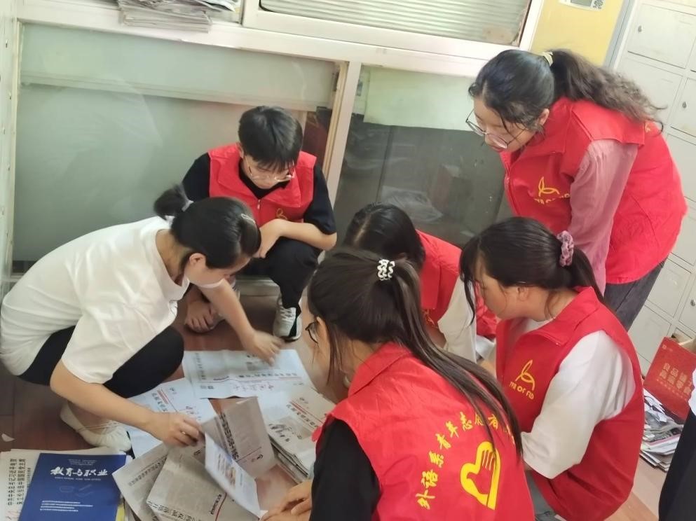 活动开始,志愿者们了解活动要求之后,从收发室工作人员手中接过报纸,将报纸按照各类整理好,将信封放入相对的信箱,热情地投入工作。天气炎热,但志愿者们斗志不减,分类整理好各种书籍报刊,互相帮助,团结合作,接着他们开启了下一项工作。