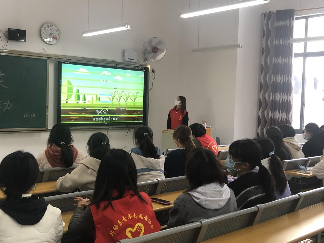 外国语学院班团支队于2021年11月12日到2021年11月14日掀起公益热潮,大一的同学们奇思妙想,在校园里积极进行公益活动。打扫卫生、清理枯枝、给环卫工人以及学校值班人员送去热饮等,无不体现了同学们炽热的公益之心。他们自主策划校园随手公益活动并由外国语学院青年志愿者协会对接,提交活动方案,活动方案通过后由外国语学院青年志愿者协会在志愿汇与悠学派发布活动,同学们进行活动签到、签退。
