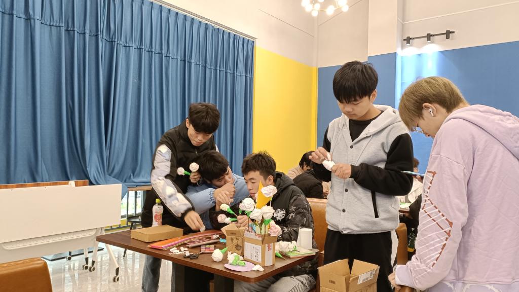 来学校已经有一个多月了,很多同学都比较想家,数字媒体技术2班的同学们便把志愿公益与温暖班级结合起来,利用綦河书院共享厨房,来了场冬季的饺子活动,同学们自己动手,和面、擀皮、包煮……,同学们在过程中体验动手的快乐,分享合作的喜悦,传递冬日的温暖。数据科学与大数据技术1班全体同学齐动手,利用废旧卫生纸做出五彩斑斓的玫瑰,赠予每一位移通学子,用浪漫传递人人之间的情感和爱意。
