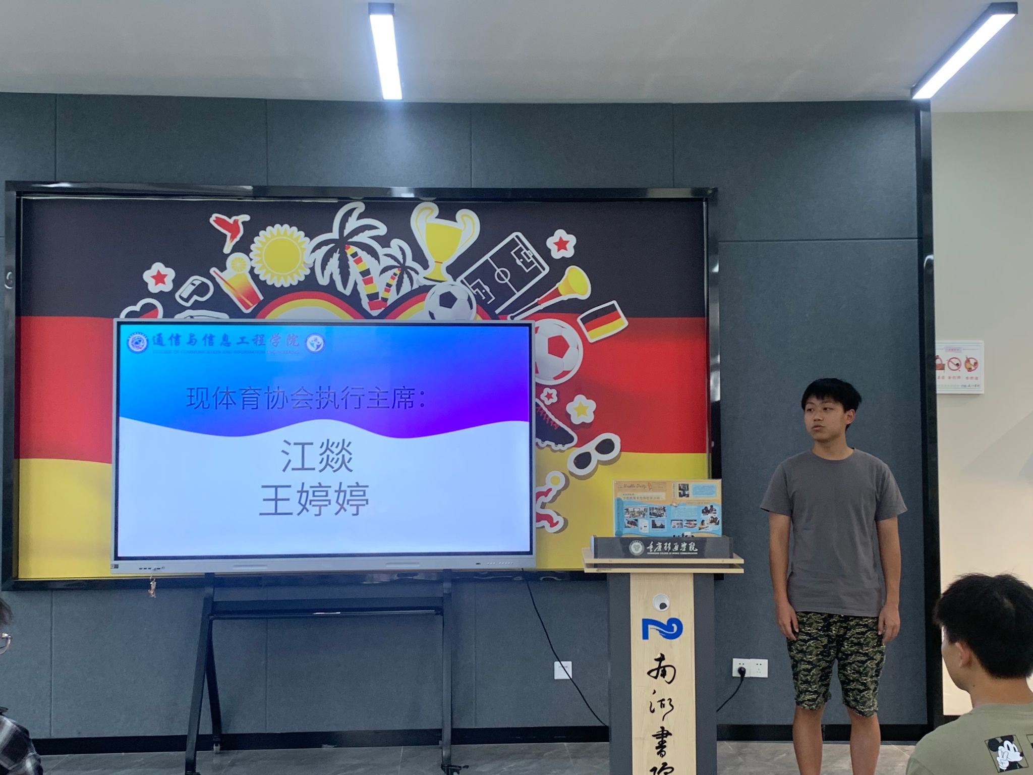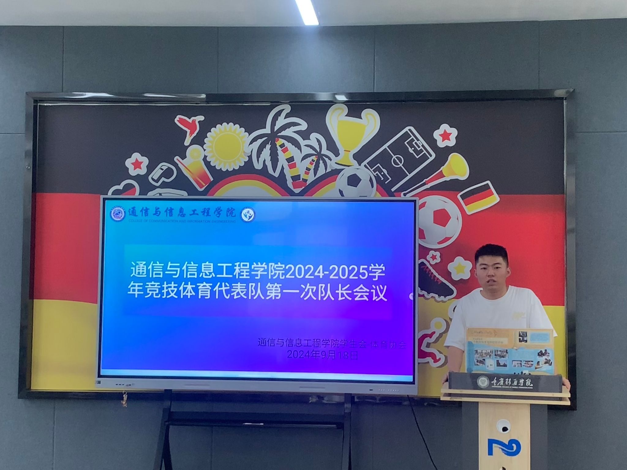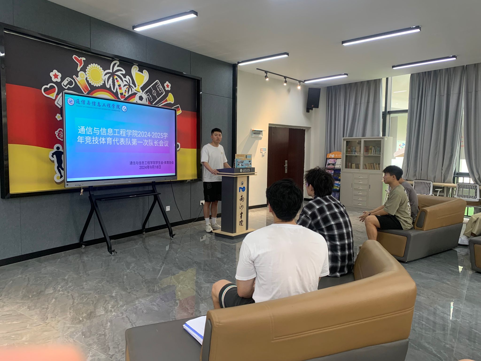 2024年9月20日,通信与信息工程学院2024-2025学年竞技体育代表队第一次队长会议在南湖书院中德创意工坊召开。参加会议的有学院竞技体育中心指导老师梁杰超老师,前学生会体育协会执行主席肖杨、杨鹏,现学生会体育协会执行主席江燚、王婷婷以及现任的球队队长。