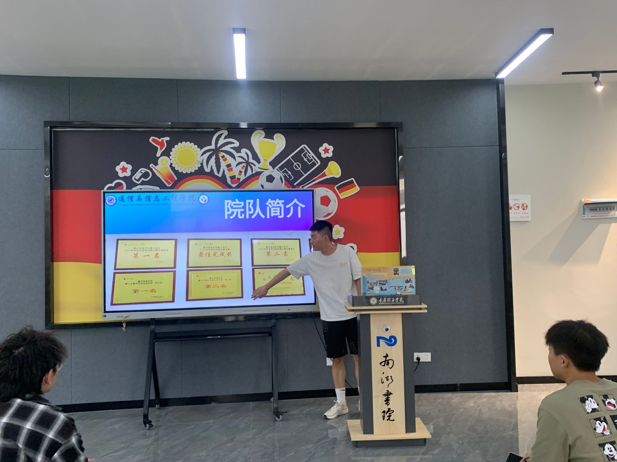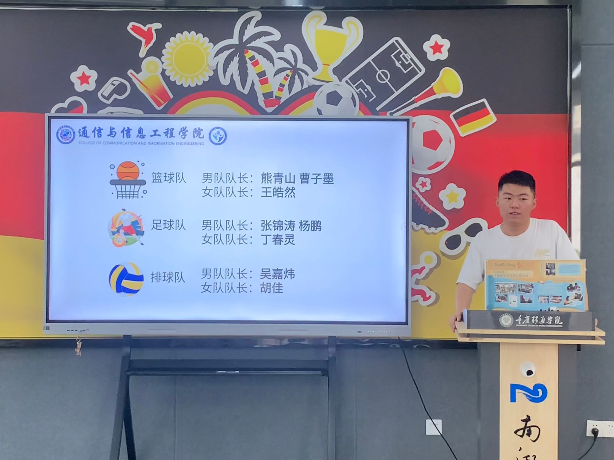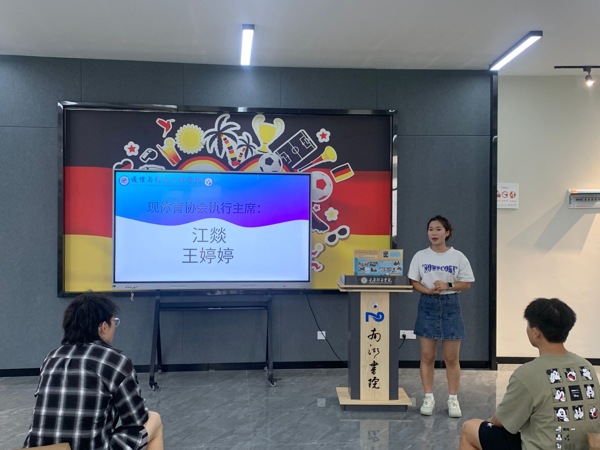 2024年9月20日,通信与信息工程学院2024-2025学年竞技体育代表队第一次队长会议在南湖书院中德创意工坊召开。参加会议的有学院竞技体育中心指导老师梁杰超老师,前学生会体育协会执行主席肖杨、杨鹏,现学生会体育协会执行主席江燚、王婷婷以及现任的球队队长。