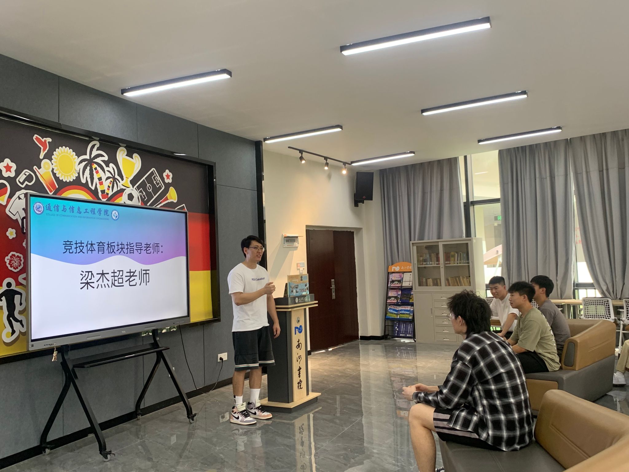 竞技体育指导老师梁杰超老师为队长指导工作,并且希望队长们在队伍的团队协作,球队的战略布局,队员技术的提升空间上多加管理和培养,强调心理素质的培养同样至关重要。并且希望三类赛事能在学院内部带动更多的学生加入以及参加比赛,为构建学院“竞技、全民、阳光”的校园体育氛围做出表率。