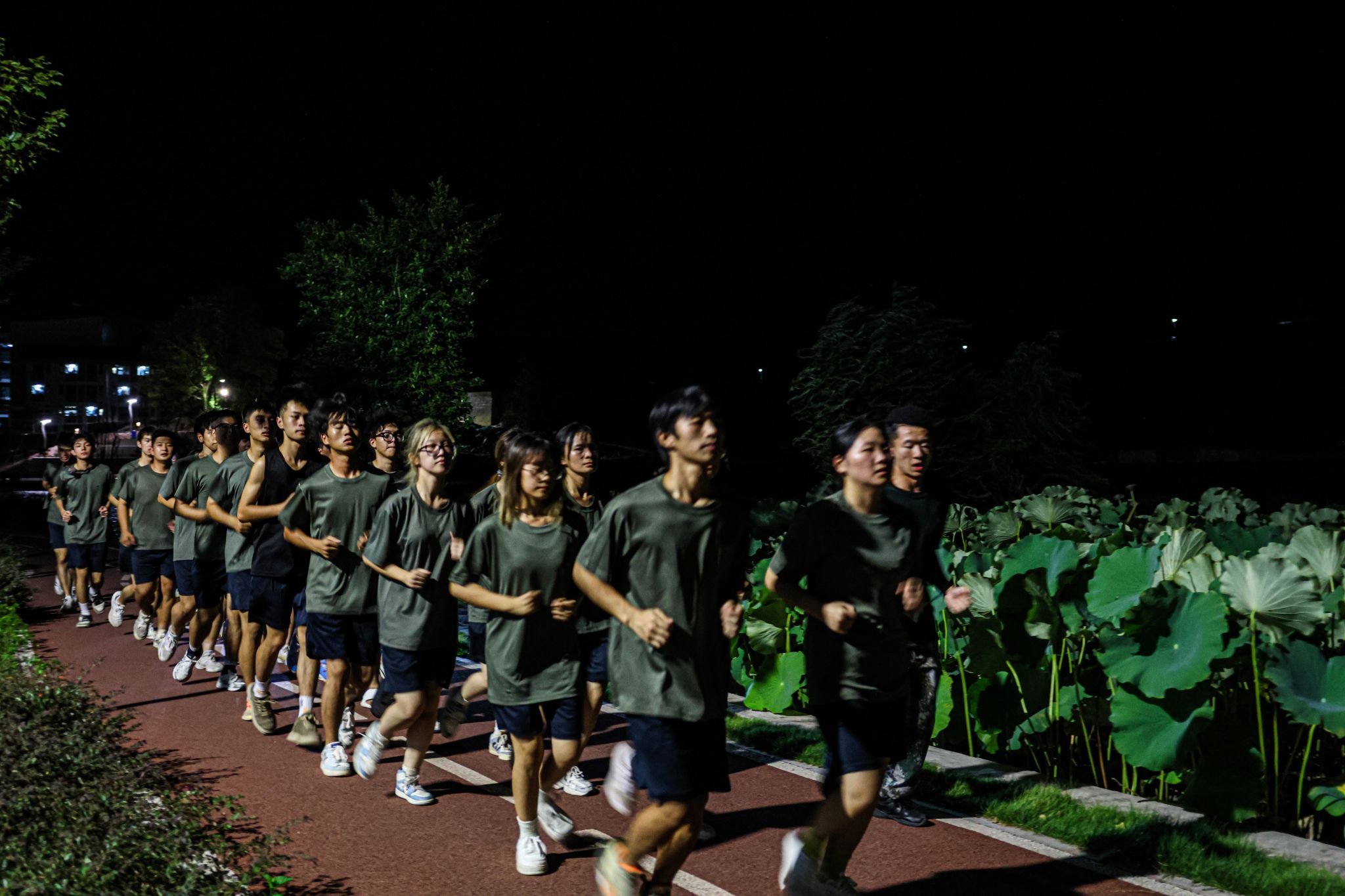 “凌晨的紧急集合”考验学员们临时反应力。哨声一响,同学们迅速集结做好战斗准备。严格按照指令和要求开始紧张而有序的9圈长跑,展现队伍应急意识和快速反应能力。心灵在奔跑中逐渐凝聚,让队员们对团队的重要性有了更加生动而深刻的认识。