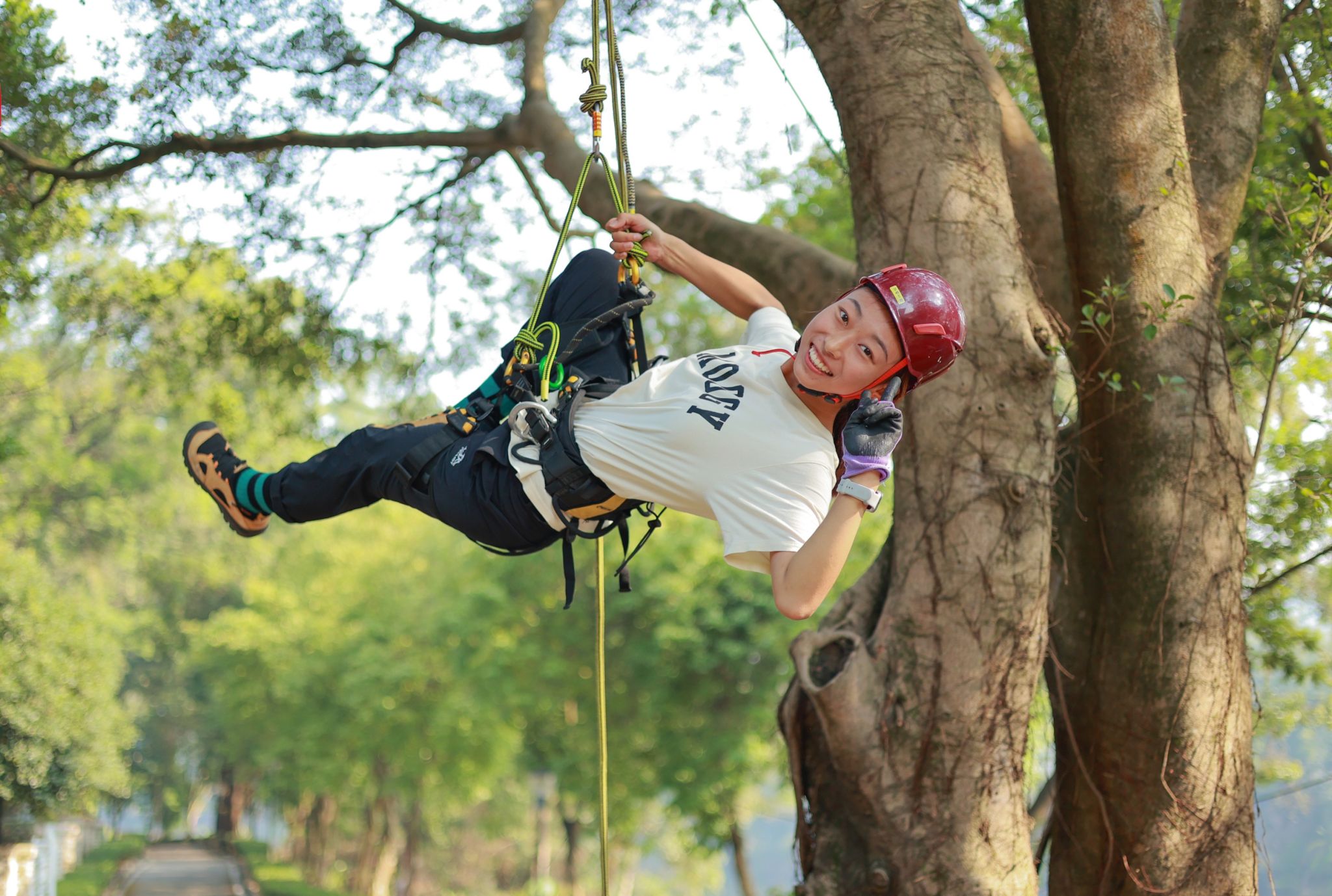 在专业成长的道路上,她如同竹子拔节,不断向上伸展,追求更高的境界。积极参与各种培训和学习,先后取得了初级攀岩社会体育指导员、初级桨板教练员、中级攀树教练员等证书。既丰富了她的专业知识和技能,也为部门拓展了新的教学领域。外出执裁也是她专业成长道路的重要途径,每次执裁她都如同一个孜孜不倦的探索者,带回更专业的技能、更坚实的安全保障理念和更全面的赛事组织和管理方法。对她而言,这些收获是突破自我、追求卓越的基石,助其提升专业素养,拓宽自己的视野;对学生来说,则是开启他们成长大门的钥匙,引领他们进入一个全新的“世界”,培养他们的勇气、毅力和团队协作精神。