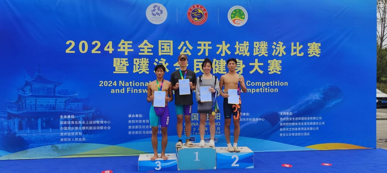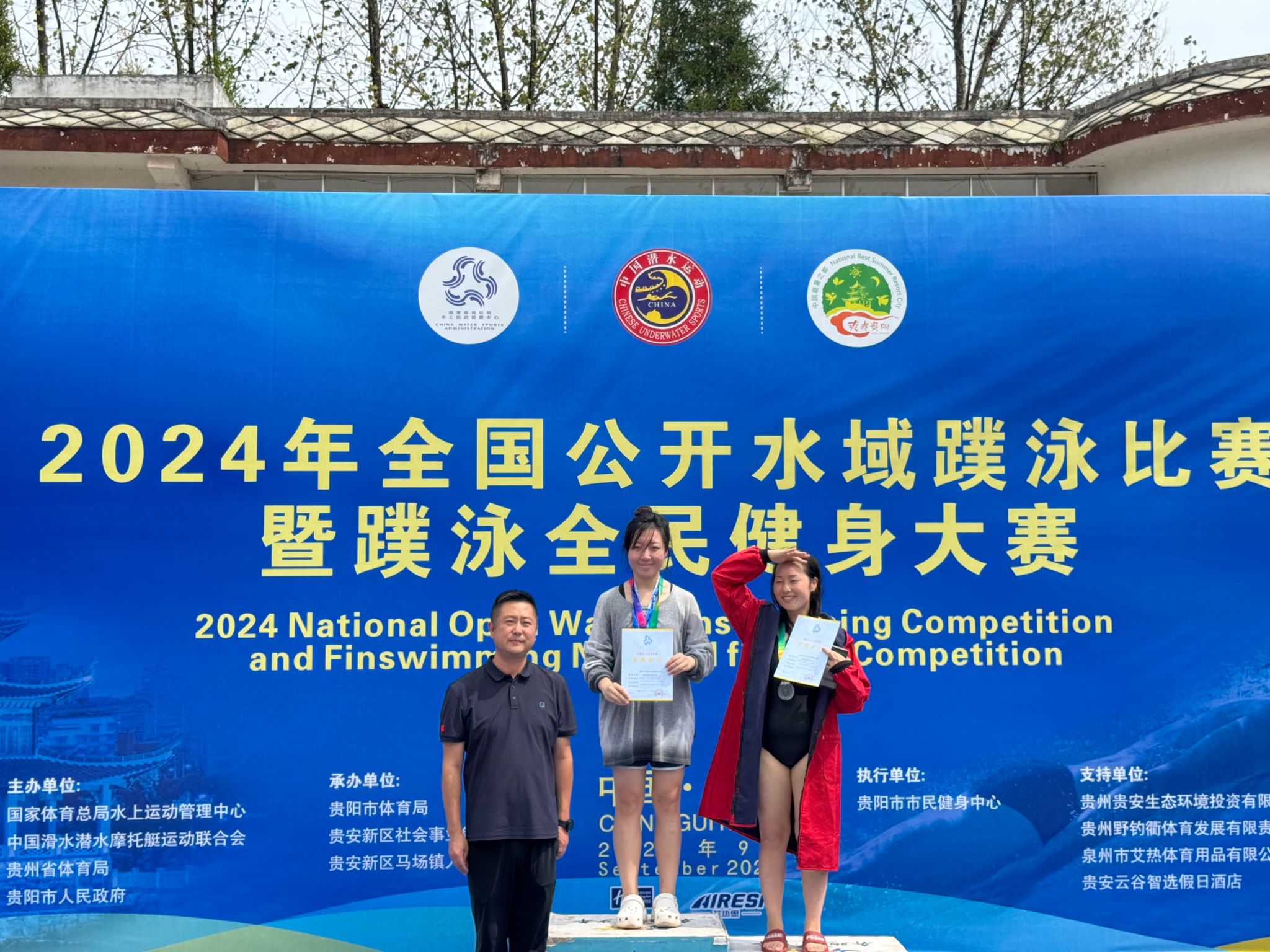 2024年9月27日,由校游泳队教练陈伟业带领重庆移通学院校游泳队16名队员出征在贵州省贵阳市举办的2024年全国公开水域蹼泳比赛暨蹼泳全民健身大赛。本次比赛吸引了全国各地的12支队伍,共有157名运动员参赛。我校队员在本次比赛重表现出色,勇夺个人单项男子年龄组前三名、女子年龄组第一名以及团体第三名的优异成绩。