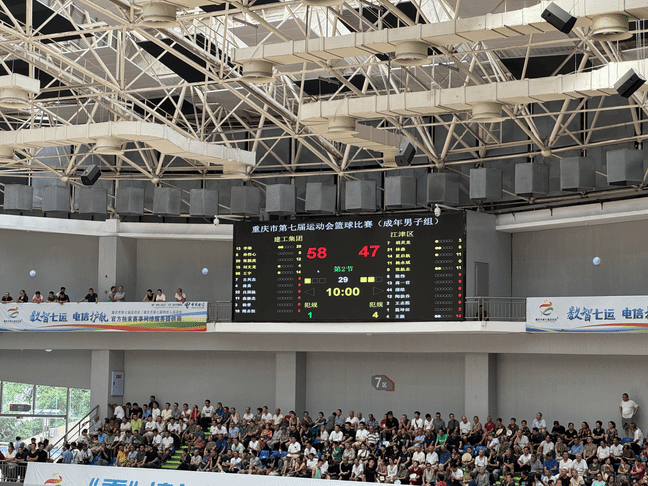 9月29日下午14时,由重庆市人民政府主办,重庆市体育局、重庆市教育委员会、重庆市总工会、重庆市合川区人民政府承办的重庆市第七届运动会“中国电信杯”篮球比赛(成年男子组)总决赛在合川区南城体育馆拉开帷幕。我校篮球队教练杨典、曾佳携全体校篮球队成员到场观看比赛并交流学习。