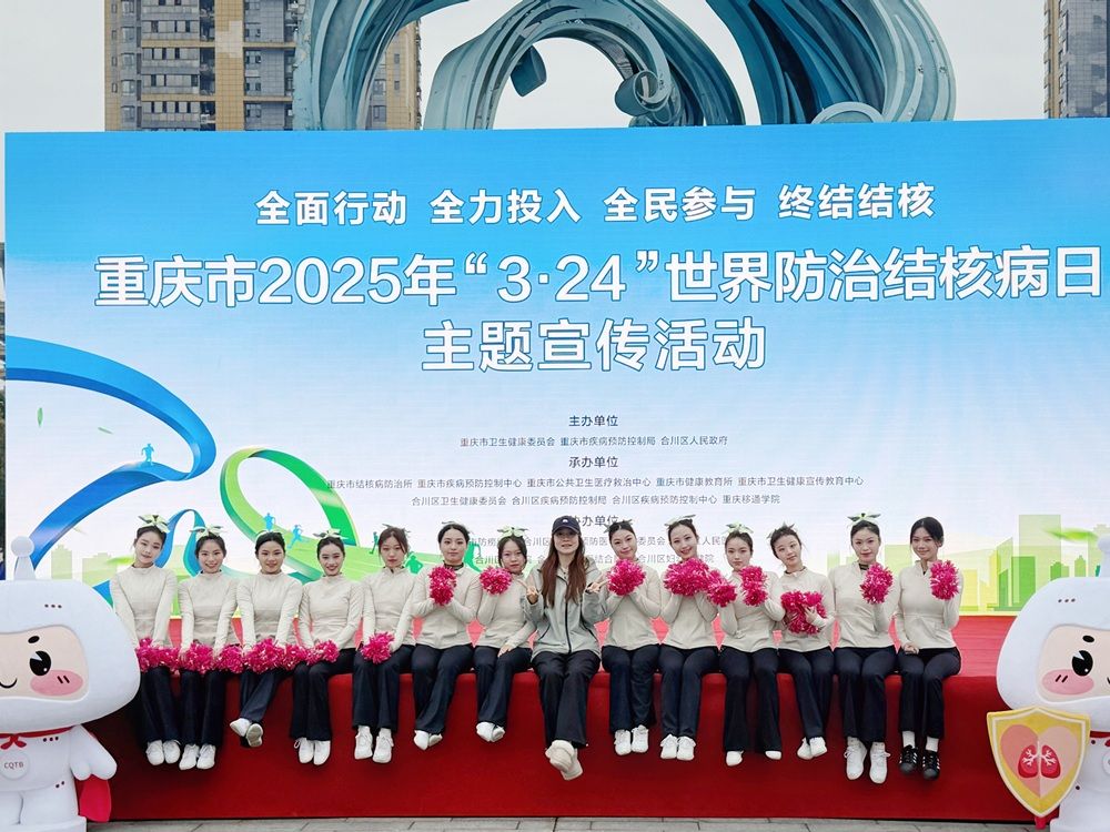 2025年3月21日,重庆移通学院啦啦操队走出校园,踏上了意义非凡的公益之旅——参加世界防治结核病日主题宣传活动表演,她们用活力四射的舞蹈,为防治结核病宣传注入青春的力量,成为活动中一道亮丽的风景线。