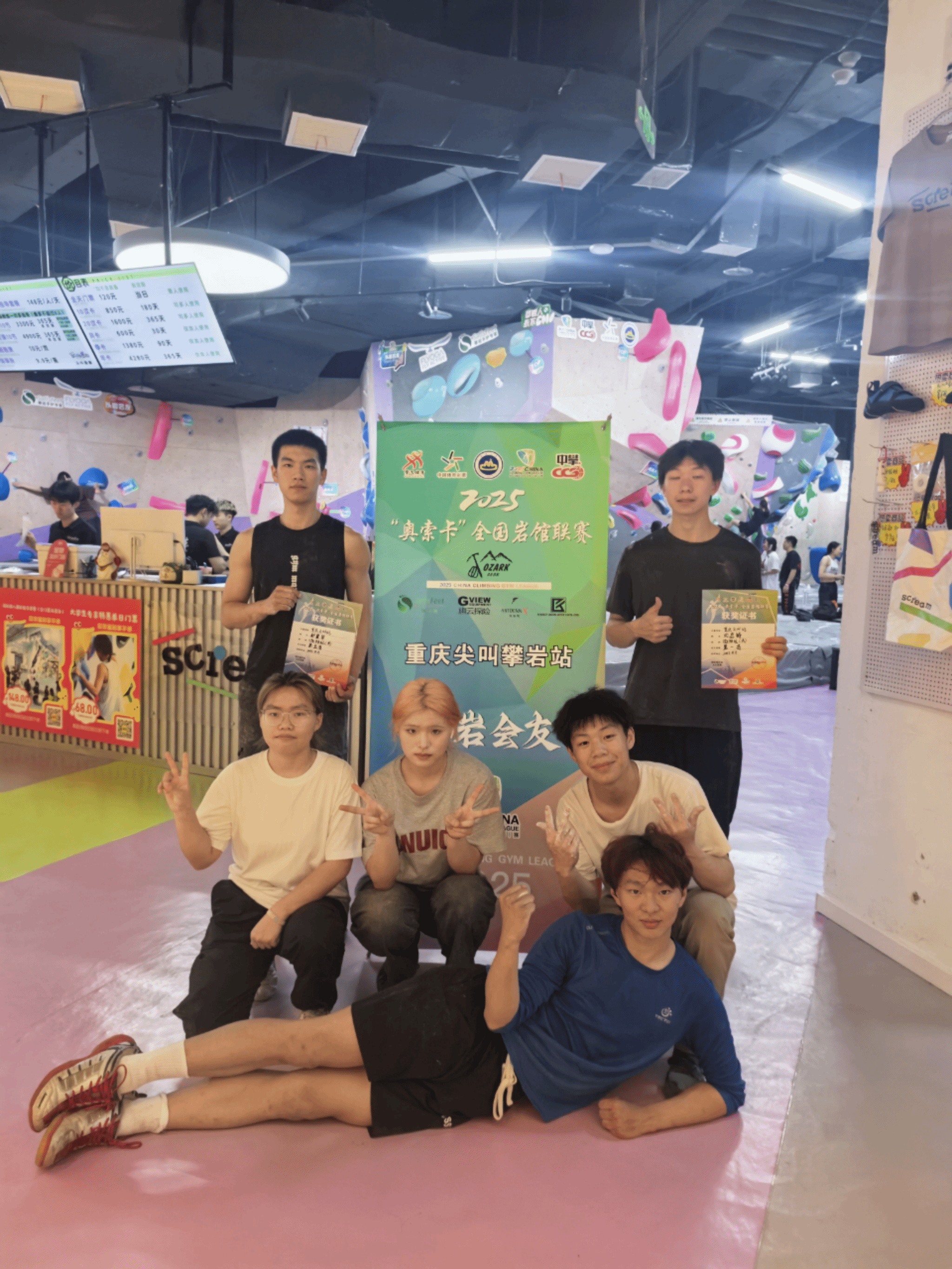 2025年4月11日,重庆尖叫攀岩馆内镁粉飞扬。在全国岩馆联赛重庆站挑战赛中,重庆移通学院户外攀岩队以黑马之姿惊艳全场。教练张国皓率领队长向思锜及队员郑星宇、刘江兰、龚敏、郭婧怡等,用岩壁上的每一个触点书写了属于校园攀岩人的热血篇章。