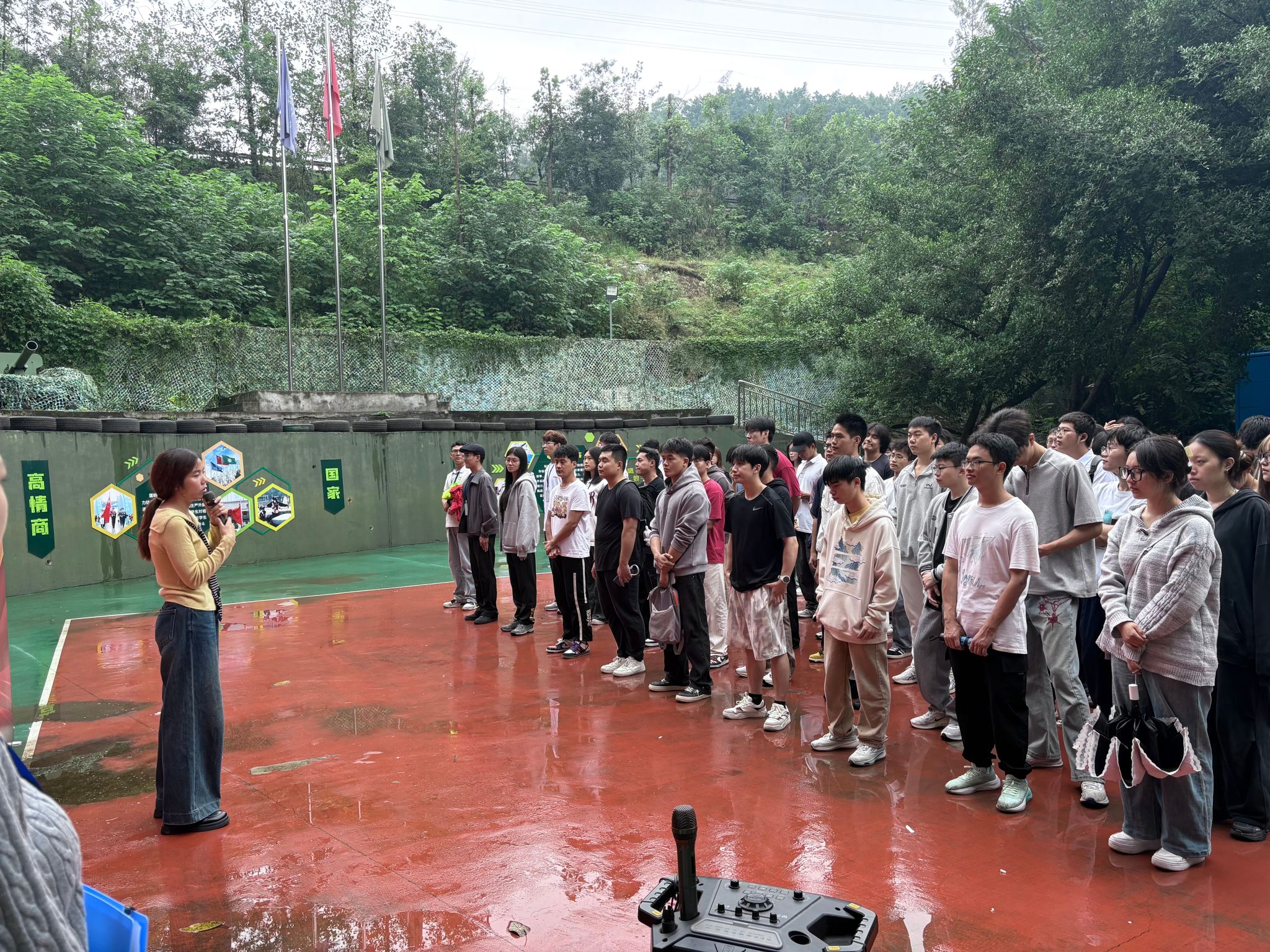 随后,营地教育中心主任助理程光涛老师为本次活动致开幕辞。他在讲话中强调了国防教育的重要性,指出强健的体魄和坚韧的意志是青年学子肩负时代使命的基础,并鼓励同学们在挑战中超越自我,感受国防体育的独特魅力,关心大家挑战过程中注意安全。紧接着,李青青老师就本次挑战赛的具体流程、活动项目及安全注意事项向全体同学作了简要而清晰的介绍。