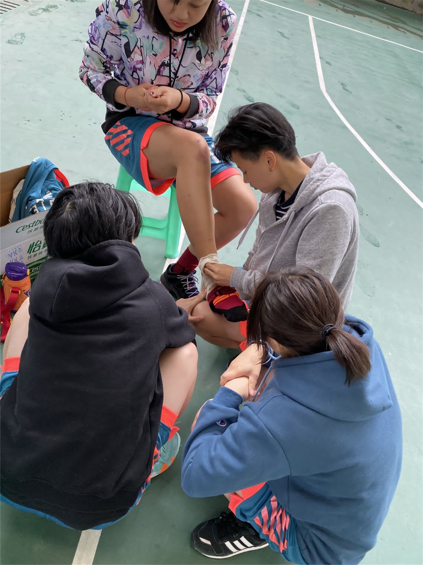 在男篮激烈竞争的同时,女篮这边的气氛更是高涨着!虽然开赛前女篮的主力队员因上一场的比赛而扭伤了脚踝,但只用纱布进行了简单的处理的她毅然决定继续比赛,跳球、篮板、盖帽、篮下背身单打一系列流畅的动作让我们看到了她必胜的决心以及高昂的斗志!