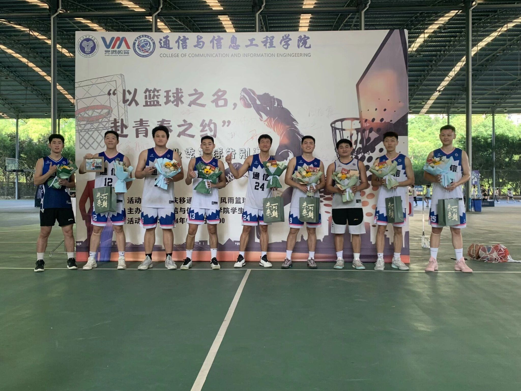 感谢学校和学院的老师们,因为你们的支持和关怀,才有了这次难忘的篮球赛。虽然我们的大学生活已经结束了,但是我们的故事还没有写完,我们怀揣着对篮球的热爱和对未来的憧憬重新扬帆起航,同时也会将通信男篮的精神一直传承下去。