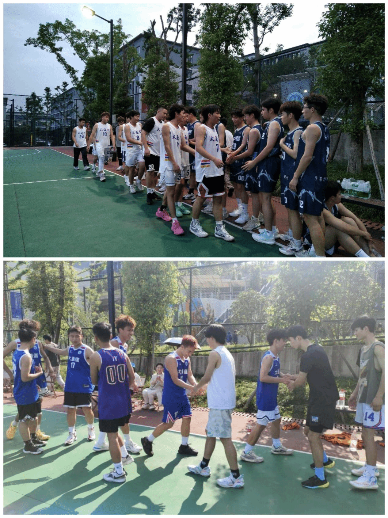 八强进四强的最后一场比赛于5月14日在瀛溪篮球场进行。队员们奔跑在球场上,每一滴汗水都是看得见的精彩,脸上洋溢的笑容是对篮球、对运动深深的热爱。现场欢呼声很高,老师同学们都在为他们加油。通过激烈的小组赛对决,晋级的四支队伍已经产生。
