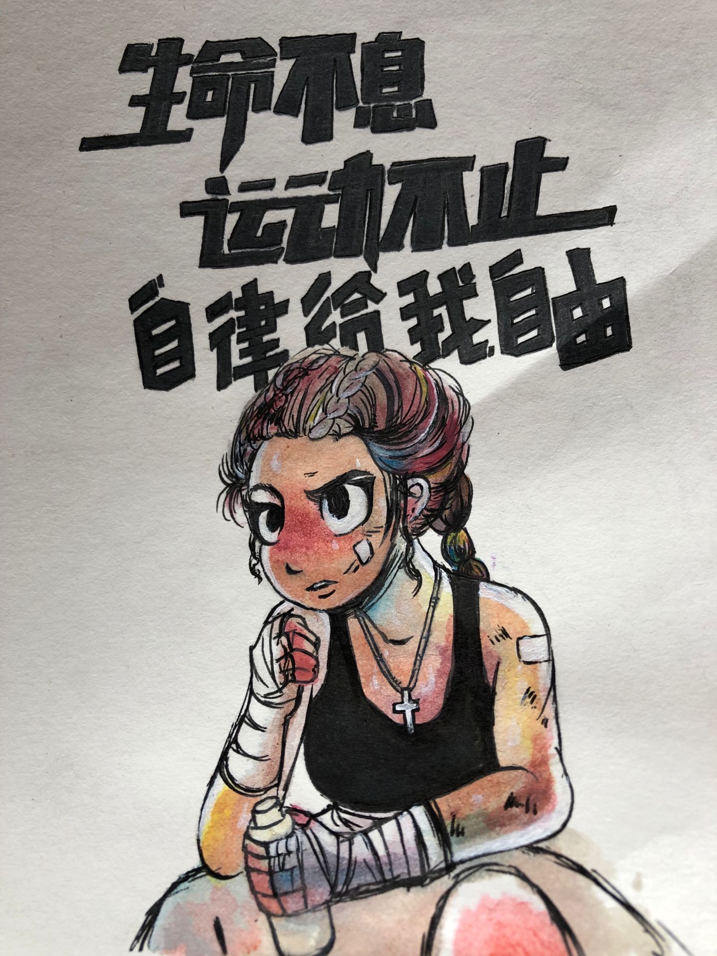 每一副小小的作品背后,展现的是同学们对体育的理解与热爱,浓墨重彩的笔触是同学们倾尽全力的表现,体育得以在不同人眼中表现出不同的风采。 每一副作品背后都有一个故事,每一个故事背后都是汗水与泪水的付出,爱上体育才会为了体育,正是这些作品彰显了体育人的精神,让大家知道他们的默默无闻,了解竞技体育的魅力。