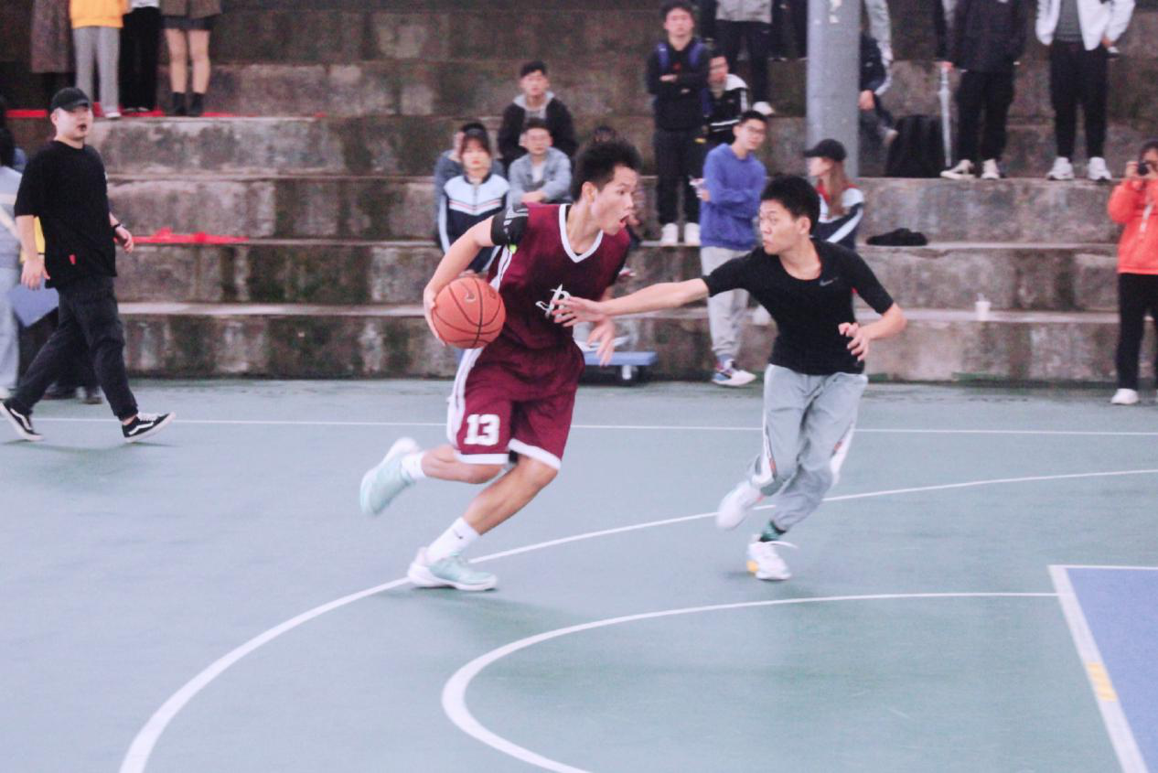 接下来,双方你来我往,比分焦灼不断。但英雄之所以为英雄,就是因为他们能在艰难时能为他人所不能为之事,而来自海南的曾维龙同学就是这般的“英雄”。在比赛中期,凭借强硬的个人实力,不断冲击工程管理3班筑起的坚固防线,运用挡拆顺下,背身单打,欧洲步等丰富的进攻手段和千锤百炼的技术,稳定拿分,打破了持久的比分僵持,给予了对手极大的压力,支撑着队伍继续前行。作为对手的工程管理3班当然不甘示弱,屡屡进攻但始终难以得手,终于在3号选手唐杰的空位投篮下得到了宝贵的2分。赛场外前来加油呐喊的同学们此刻也为3班的得分爆发出热烈的掌声和欢呼。即使落后,也不气不馁,斗志昂扬。