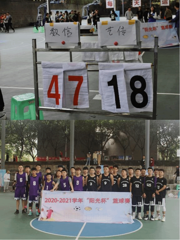 苍穹之下,烈日长空。皓月千里,谁主沉浮。腾起,瞬时疾风划破,如利刃般闪光,昂扬聚光,那是星辰所在的方向。2020-2021学年重庆邮电大学移通学院“阳光杯”篮球赛第三日赛程于11月18日12时15分在风雨球场准时展开。数字经济与信息管理学院男队迎来了“阳光杯”首位对手——艺术传媒学院。