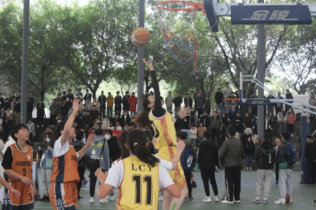 随着时间推移,双方战况愈演愈烈。数字经济与信息管理学院女队10号选手一次次冲击淬炼商学院女队的禁区,犹如尖刀一般刺穿对手的防线。一次次的上篮与罚球,带领数字经济与信息管理学院建立起比分优势。随后10号选手运球连过两名防守球员,在对手紧逼下一记高难度的左手高抛打板进球,瞬间点燃全场,观战的男孩子们都忍不住竖起来大拇指,场边欢呼声冲破乌云,直达云霄。如此,数字经济与信息管理学院带着巨大优势结束了上半场。