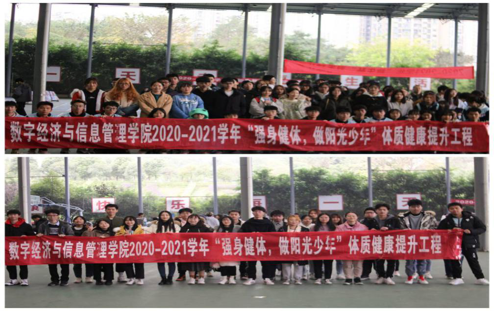 数字经济与信息管理学院2020-2021学年“强身健体,做阳光少年”体质健康提升工程已落下帷幕,此次比赛秉承我校完满教育中的竞技体育精神。胜利,是团队合作的硕果,充分展现出竞技体育的拼搏精神。一场跳绳比赛,跳出了我们青春最亮丽的本色,跳出了数字经济与信息管理学院最靓丽的风景。