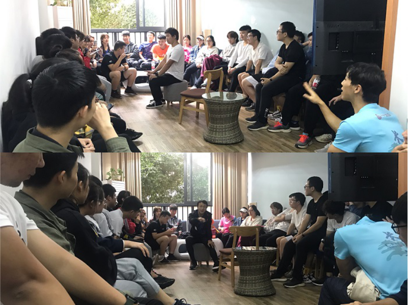 本次活动后半段,教练组织新队员做自我介绍,加深对彼此的了解和增加对铁人三项挑战队这个大家庭的集体感和归属感。学长学姐也用自己的热情带着新队员们融入这个充满爱和温暖的团队中来,弘扬铁人精神,传承校队文化。