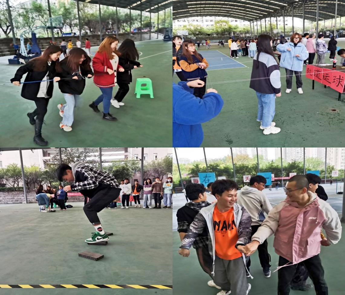 在比赛的过程中出现了许多令人捧腹大笑的画面。撑杆跑转圈时最外围的同学总是一脸“惊吓”的被拽着跑,摸石过河的同学弄得手忙脚乱,慢骑自行车的同学被摔得人仰马翻,参加了颠排球的同学总是用脸接球。各种奇葩技能让人哭笑不得。场上的同学大汗淋漓,场下的同学主动担当起了啦啦队为他们加油喝彩。比赛结束后公布获奖名单时,获奖的同学同学脸上绽放出开心的笑容,这是他们用努力换来的成果。整个比赛场上洋溢着蓬勃的青春朝气。