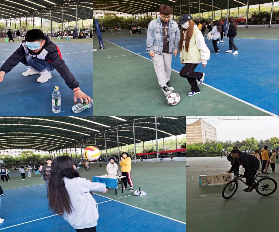 为了给学生搭建沟通交流的桥梁,扩大学生交际圈,提高学生身体素质,提起对体育运动的兴趣。3月21日下午2点,我院在C区风雨篮球场举办了形式新颖、内容丰富的趣味运动挑战赛暨第一届数信吉尼斯挑战赛。本次趣味运动会设置了“盲人射门”、“撑杆跑”、“摸石过河”、“慢骑自行车”四个单人赛项目和“线上乒乓”、“心系一起”两个团体赛项目,每个项目都吸引了很多同学参与。