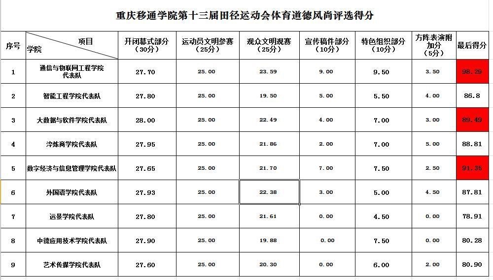 美好暂止于4月9日下午,恭喜数字经济与信息管理学院运动员代表队总分名列第六,教工组代表队荣获第四名,道德风尚总评第二!此次运动会,让我们感受到了数信师生的热情与朝气,他们锻炼的是体力,激活的是生命,弘扬的是个性和青春活力。无论成功与否,我们将永久铭记这充满奋斗印记,这阳光灿烂的日子!