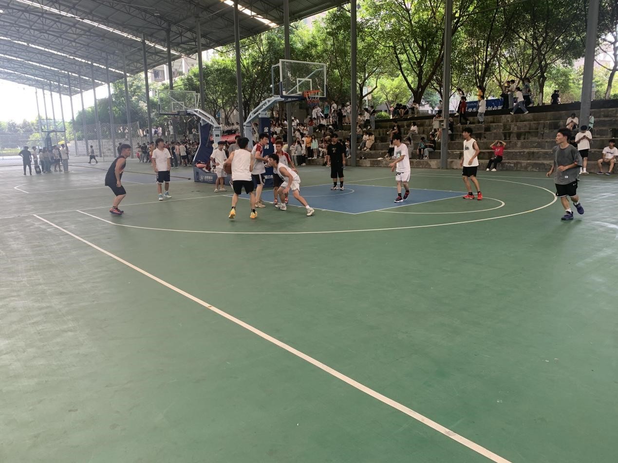 随着裁判哨声响起,首战拉开帷幕。视线转向场地,管工牛马成双队与憨憨篮球队两队激情碰撞,卧龙凤雏队和业余养老队不相上下。比赛双方队员都进行着激烈进攻,同时仔细防守,两支队伍实力抗衡,屡屡进球,技术台的工作人员翻牌不停。时间流逝,前面三小节很快过去,最后一节,队员们精力都已消耗殆尽,但在场上的步伐却不曾放慢,全力以赴至最后一秒。台下的观众也随着球入篮筐发出一声声尖叫,大家到都在期待着、等待着胜利的到来。