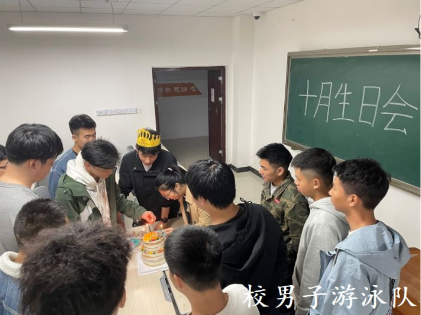 2021年10月17日,校男游团建活动于竹逸书院A201开展。老生新生共同为本月过生日的队内成员集体庆生,准备各式各样的小吃和蛋糕供大家品尝,生日会的目的是使大家热爱校男游这个大团体并感受团队的温暖。