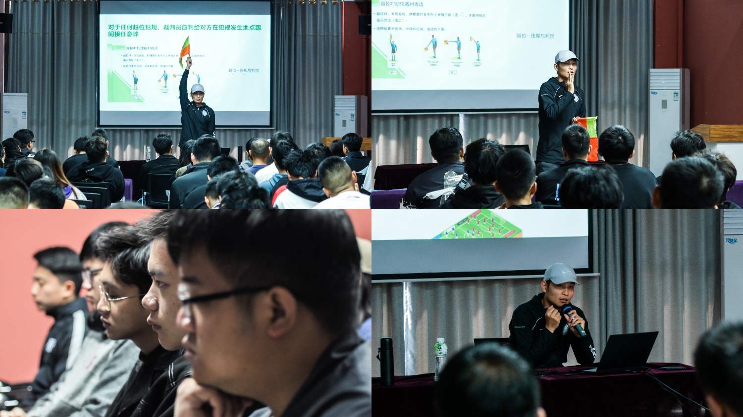为进一步加强我校足球裁判队伍建设,逐渐提升足球裁判员的执裁水平和专业素养。为期十天的“双百计划”第23期足球裁判员岗位培训班于2021年11月1日在天渠书院111报告厅正式落下帷幕。出席本次活动的讲师是国家一级足球裁判员李明磊老师。此次活动着力于让每一位足球爱好者拥有一个能够接触足球裁判员知识的机会,让移通足球裁判队伍注入新鲜血液,拥有更强大的力量。