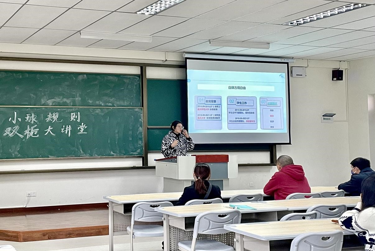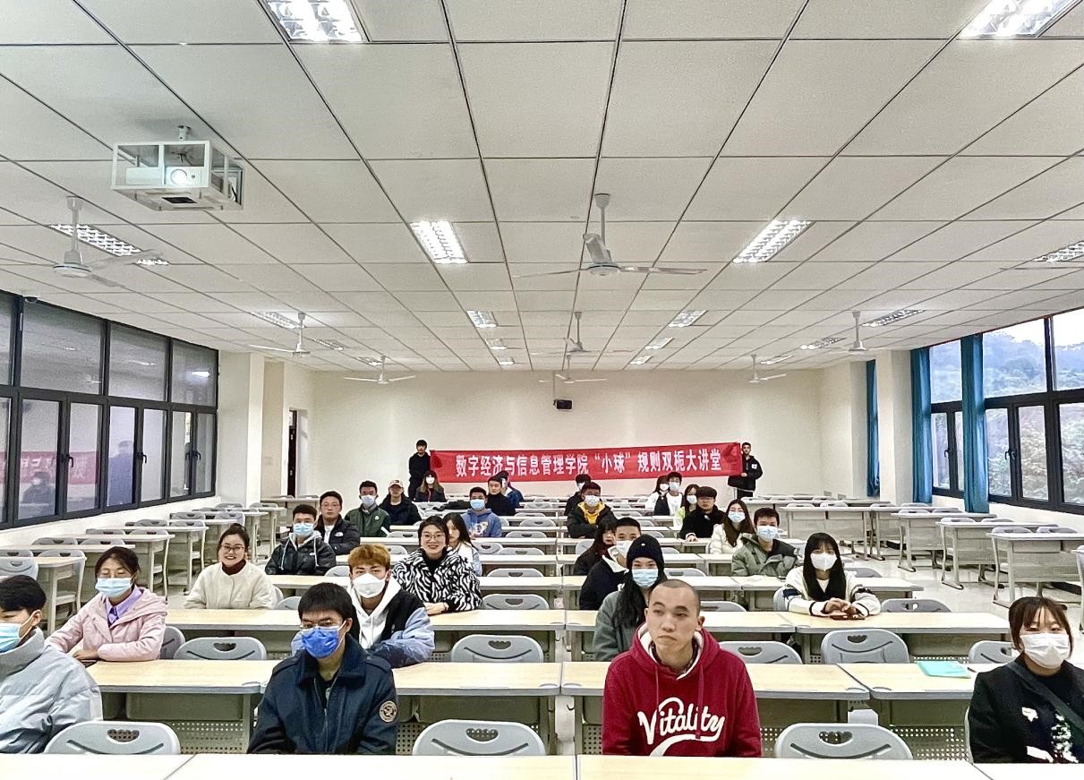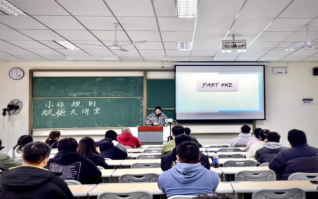 初冬悄然而至,带有瑟瑟寒风却依然抵挡不住我们冬日里的运动热情。为让同学们更了解小球竞赛规则,同时进一步增加小球受众群体,我院体育协会于11月17日下午16:00在双栀202教室开展“小球”竞赛规则双栀大讲堂。本次活动积极响应疫情防控要求,创新思维转变活动形式,采用线上直播(291人)、线下授课(36人)相结合的模式,促进我院小球运动更好发展,同时更专业、更全面地向同学们讲解“小球”竞赛规则,此次活动邀请到竞技体育板块指导老师吴生亮老师进行讲解。