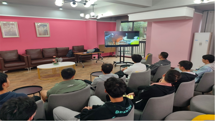 沙排比赛对队员在场上的应变能力和心理素质有很高要求,为促使队员可以在轻松中进入比赛状态。2021年10月22日,校男子排球队在爱莲书院艺术交流室观看《排球少年》,感受排球少年在球场上的飒爽英姿,学习其在比赛中对心理状态调整,提前感受赛场氛围,为接下来的比赛做好心理建设。