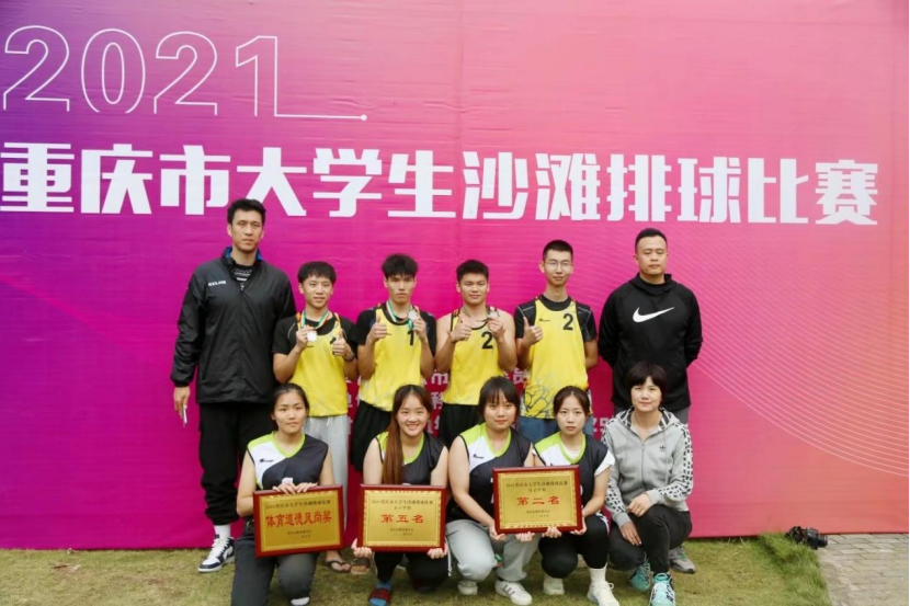 10月26-29日,由重庆市教育委员会主办的2021年重庆市大学生沙滩排球比赛在我校隆重举行,本次比赛由体育训练部孙哲老师为领队,高川和颜文娟老师作为主教练带领校排球队参加比赛,经过三天激烈比拼,我校男排荣获甲组第二名、校女排荣获甲组第五名和体育道德风尚奖!