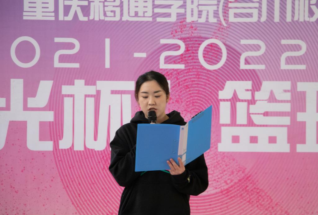 随后进行开幕式第五项,由主办方竞技体育中心代表学生体育联合会执行主席张治民及竞技体育中心训练部球类教研组组长、校女篮教练曾佳对“阳光杯”系列篮球赛事致辞,她们表示希望通过此次“阳光杯”系列赛事加强大家对体育赛事的关注及对体育赛事的热爱。同时也在精彩言辞中包含了对本次“阳光杯”系列篮球赛事的期待与祝福。在礼炮声中,竞技体育中心训练部球类教研组组长、校女篮教练曾佳宣告本次2021-2022学年“阳光杯”系列篮球赛正式开始!