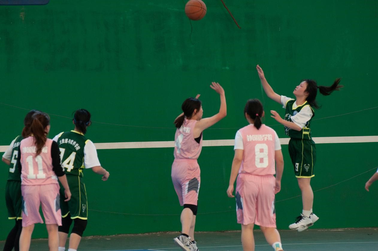 女子B组外国语学院以46:16 的比分获得跟大数据与软件学院比赛的胜利。
