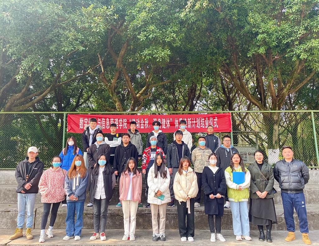 人不是因为没有信念而失败,而是因为不能把信念化为行动,并且坚持到底。10月26日,32名同学在A区田径场组成数字经济与信息管理学院体质提升训练营,在持续一个月的体质提升训练中,大家将汗水洒在跑道上,11月23日的最后一次训练,标志着我院“律动青春,强身健体”体质焕新计划完满结束,特此在11月26日举办结业仪式。本次活动由竞技体育中心铁三教练郑万达老师全程指导,我院竞技体育版块指导老师全程跟进,展现出我院对于体质健康的高度重视。