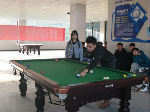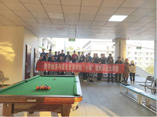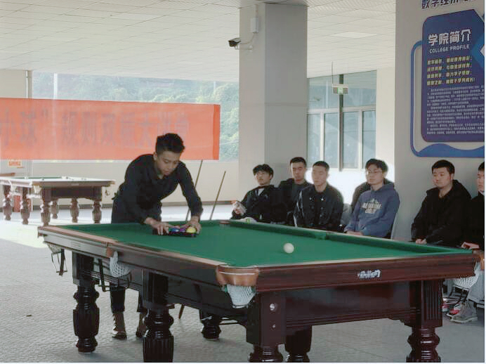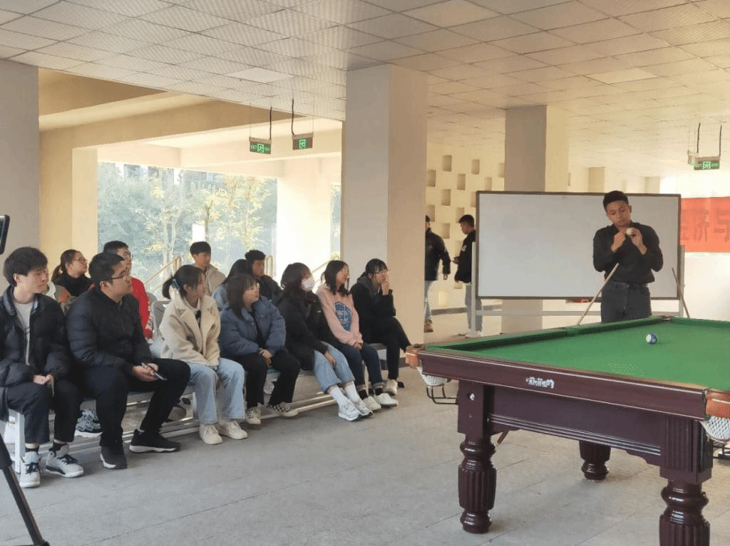 冬日暖阳高照,学习氛围萦绕。为传播“乐教、乐学、创造、创业”的校训精神,培养我院学子多方向发展,12月2日下午16:00我院于双栀书院顺利举办第二期”小球”比赛规则双栀大讲堂。本期双栀大讲堂与第一期采取相同的线上、线下相结合的模式“双线”开展,在遵守疫防控背景下扩大受众群体。本次大讲堂特邀体育联合协会主席张睿斌同学为我们讲解台球相关规则,依托双栀书院完善的台球设施进行讲解示范,将理论规则与实际操作相结合,使我院学生更深刻了解台球知识与技巧。