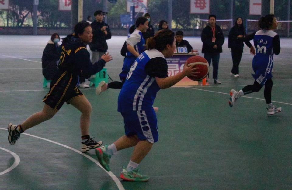 女子B组智能工程学院以42:25的比分获得跟外国语学院比赛的胜利。