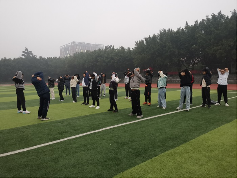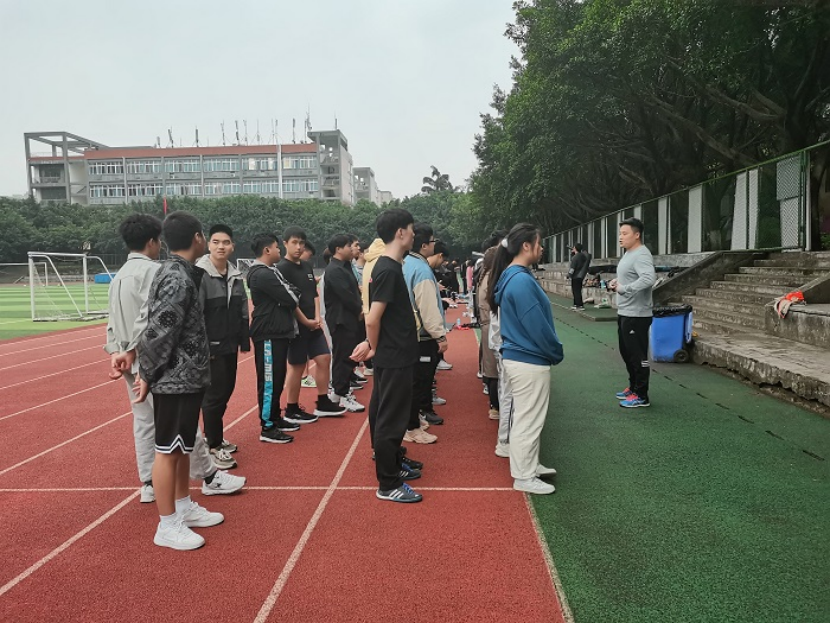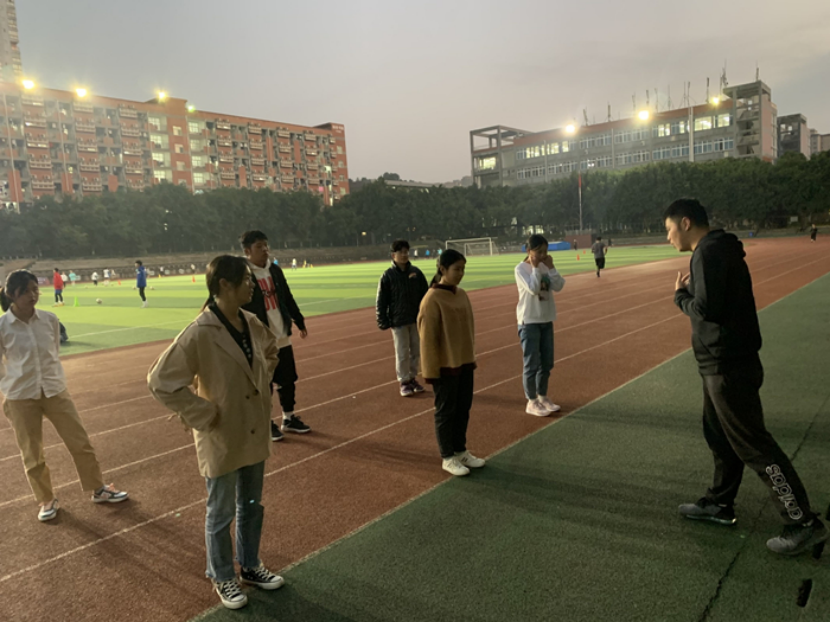 11月9日李游教练在田径场对外国语学院的学生进行了趣味运动会赛前第二阶段的训练指导,对同学们的赛前热身动作进行复习和纠正,并带领同学们在操场进行慢跑,纠正同学们的跑步姿势和跑步动作。