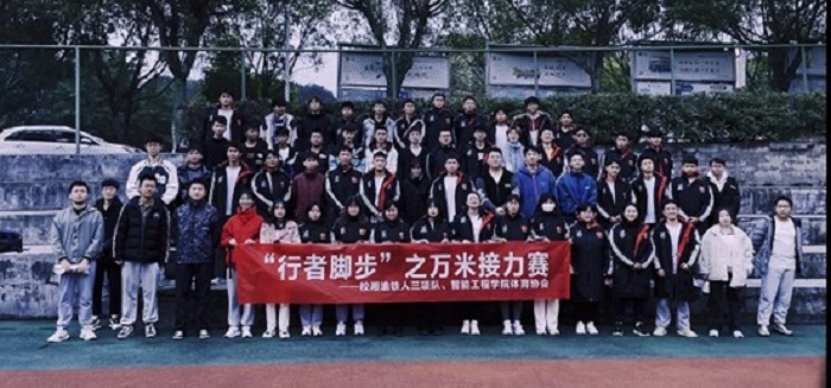 11月23日中午田径场,校湘渝铁人三项队配合智能工程学院体育协会开展班级“万米跑”活动的前期准备工作,在制定的规则下跑出供挑战的成绩。在准备工作中大家相互配合、友好交流,取得良好的成效。