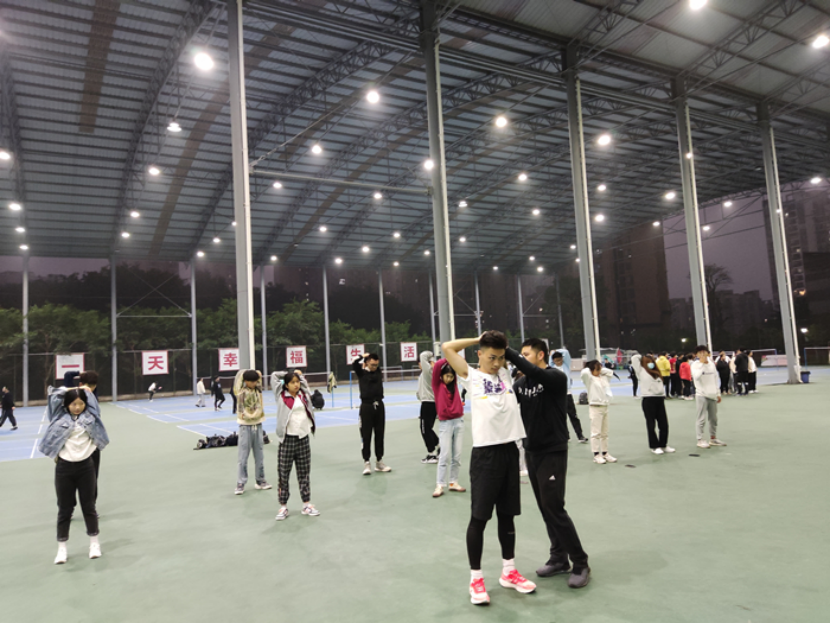 11月3日李游教练在风雨篮球场对外国语学院的学生进行了趣味运动会赛前第一阶段的训练指导,先进行理论的讲解与分析,让同学们明白了什么是合理的热身运动、赛前热身的重要性,并带领同学们进行热身运动。