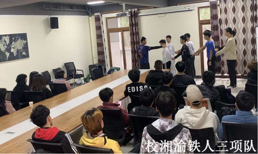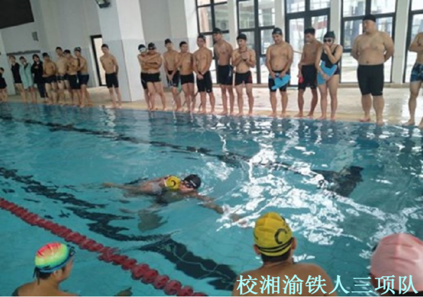 11月,教研组各代表队以讲解各项运动技术、运动装备为主,校男子、女子游泳队主要讲解自由泳技术动作和呼吸技巧,湘渝铁人队学习跑步时如何调整呼吸节奏,铁人挑战队则讲解1500米自由泳该如何合理分配体能,13铁人队则学习如何配备铁三运动装备。通过教练员的讲解与分析,使队员对各项技术动作有更深入的领悟,从而在实训中更有效的完成训练任务。