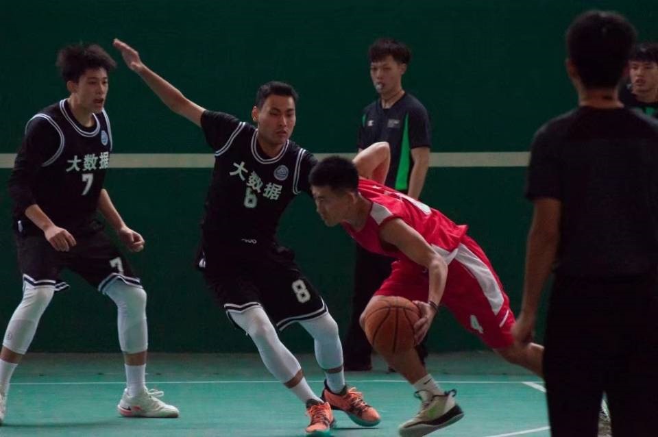 男子B组智能工程学院以48:47的比分赢得了与大数据与软件学院比赛的胜利。